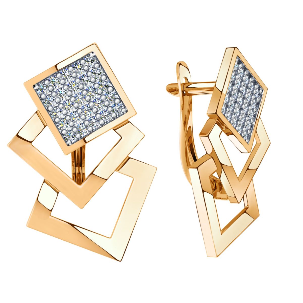 Интересные серьги 585 пробы с фианитами подходят для любого возраста, поскольку сочетается не только с модными луками, но и со строгой классикой. Английский вид замка.