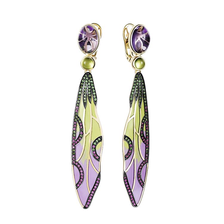 Главный символ коллекции Libelle — стрекоза, как отражение вечной женственности, любви, счастья и красоты, а также неповторимой стилистики модерна. Яркие краски витражной эмали, яркий блеск натуральных драгоценных камней, безупречная огранка, сияние золота — все это соединилось в украшении, чтобы радовать и восхищать всех с первого взгляда.