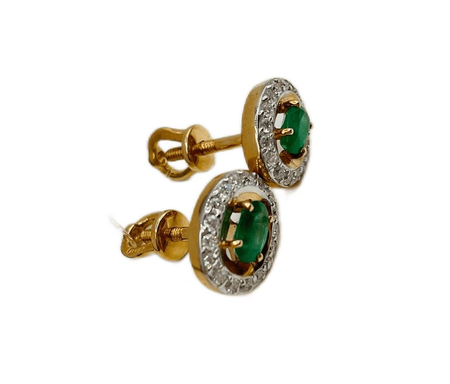 10-0133/1 Серьги пуссеты с изумрудами (Au 585)