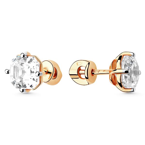 1200215158-2 Серьги пуссеты с фианитами (Au 585)