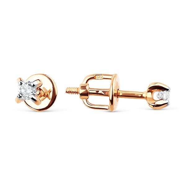 1200215291-5 серьга пуссет моносерьга с фианитом (Au 585)