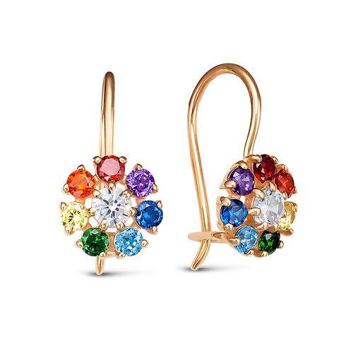 Добавьте яркости вашему ребенку. Детские серьги для девочек в виде цветка из красного золота 585 пробы с разноцветными лепестками подарят сказочный образ маленькой принцессе.