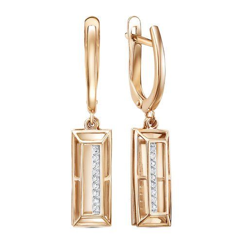 Оригинальный дизайн серег из золота 585 пробы с фианитами придадут индивидуальность вашему образу. Английский замок с подвесным элементом.