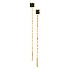 19176черн.эм Серьги продевки четырехлистник (Au 585)