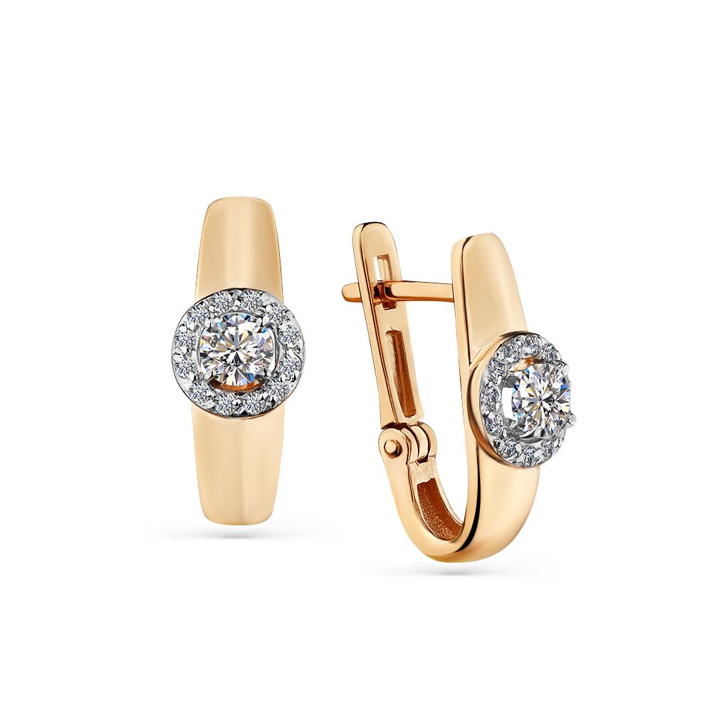 Классические серьги из золота 585 пробы с фианитами дополнит ваш элегантный образ. Английский вид замка.