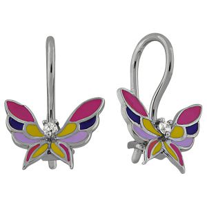 2113053 Серьги детские бабочки с эмалью (Серебро 925)