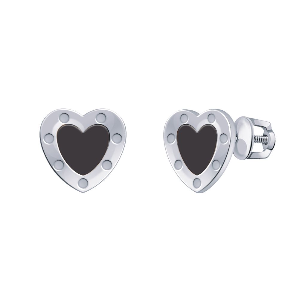 21189эс10-925 Серьги пуссеты сердце (Серебро 925)