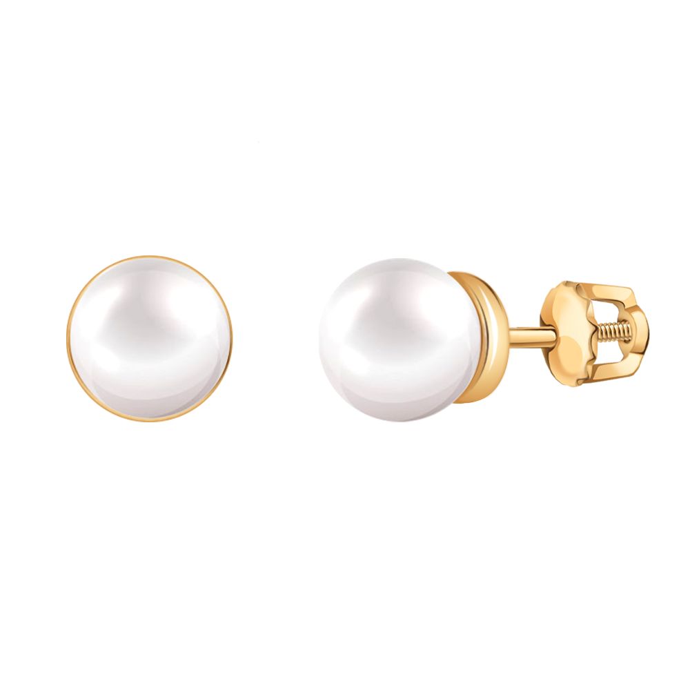 2618ж_ Серьги пуссеты с жемчугом (Au 585)