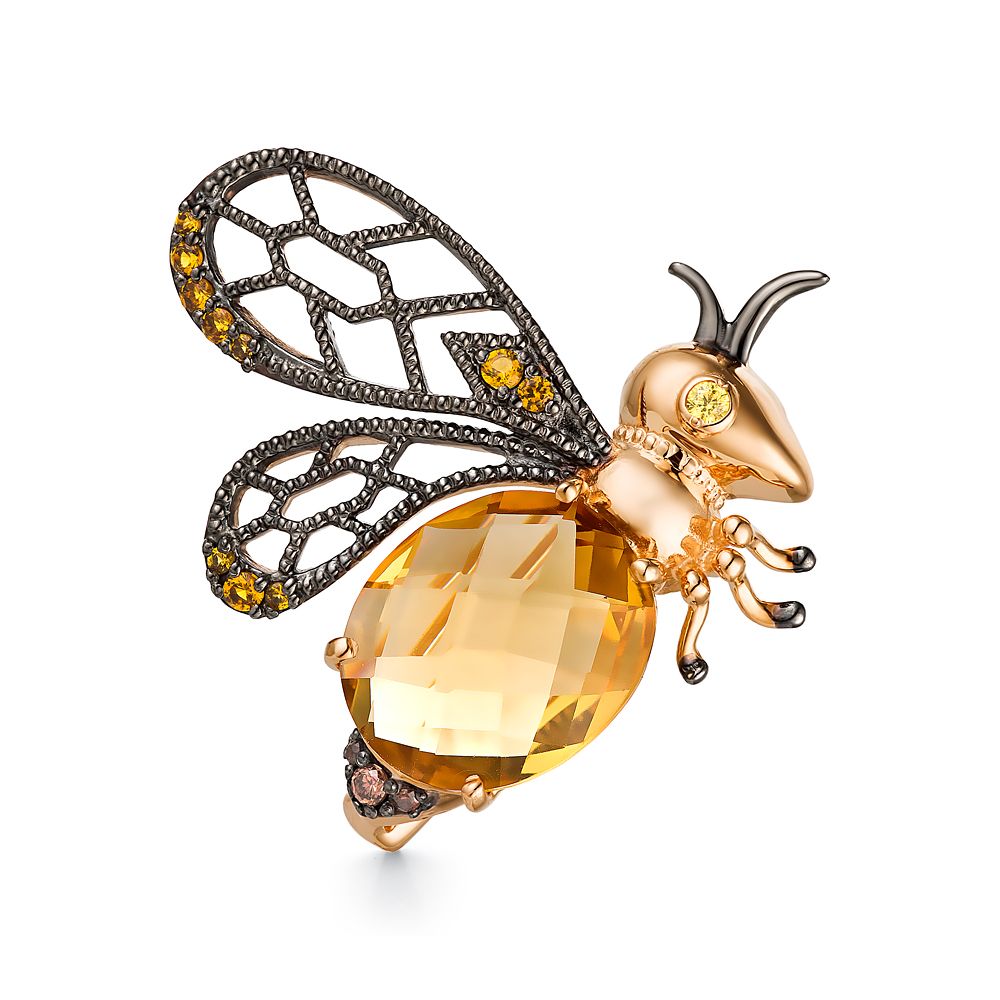 6180042кон кв Брошь шмель с кварцем (Au 585)