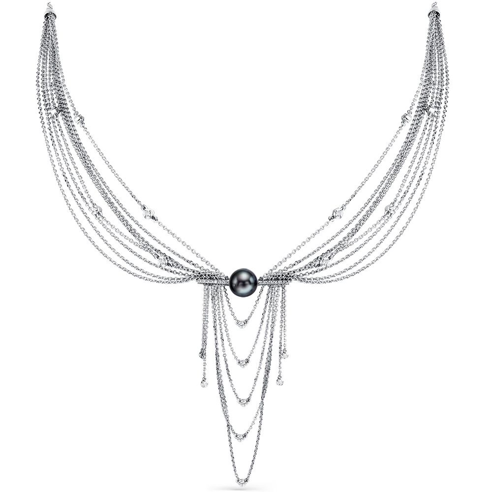 Эффектное колье из белого золота 585 пробы с жемчугом и бриллиантами придаст индивидуальность вашему образу.
