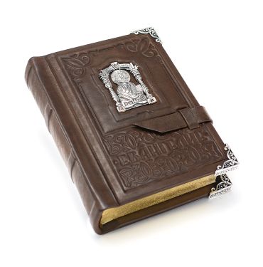 Переплет книги изготовлен из кожи натурального дубления с сохраненной естественной фактурой.