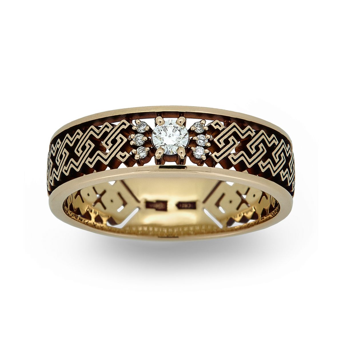 Ажурный дизайн этого золотого кольца с бриллиантом покорит сердце даже самой избирательной особы. Изделие дополнено эмалью.