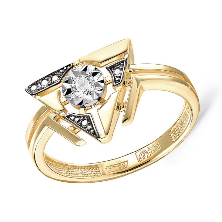 Изумительное кольцо из коллекции Джаз, из желтого золота в притягательном геометрическом дизайне с каплями сверкающих бриллиантов, станет отличным дополнением вашему безупречному модному образу.