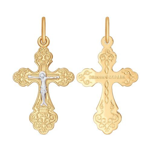 Красивый православный крестик из красного и белого золота с распятием, несомненно, будет помогать вам на протяжении всей жизни.