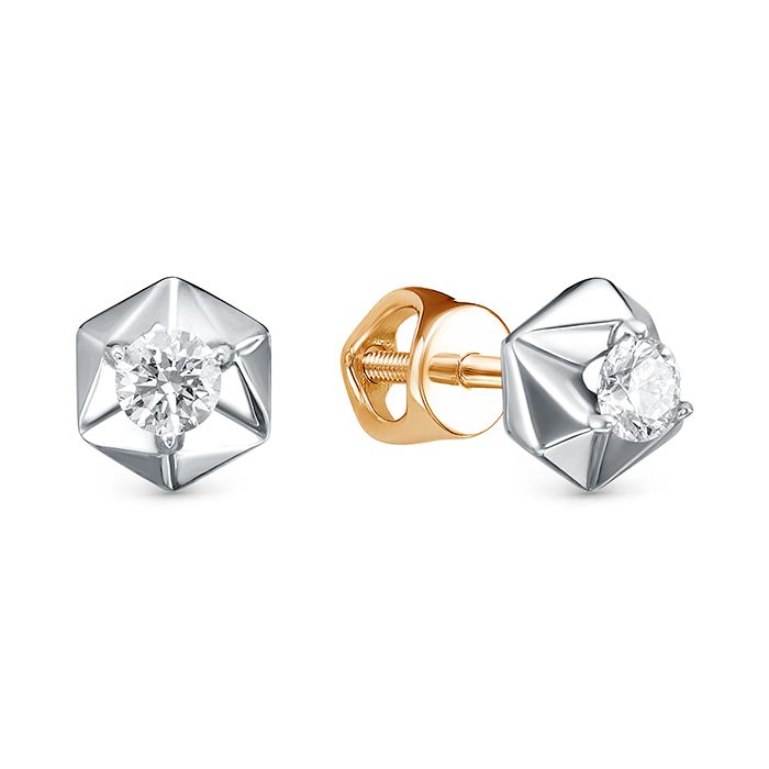 2-266-10-1,39 Серьги пуссеты с бриллиантами бренд Первая Бриллиантовая Компания (Au 585)