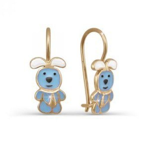 Золотые серьги  декорированных цветной эмалью станут неотъемлемой частью милого образа маленькой модницы.