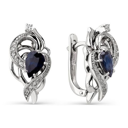 Серьги с сапфирами из белого золота бренд Алькор
