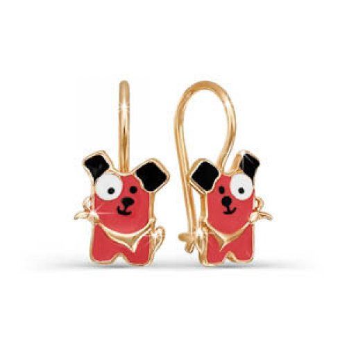 Золотые серьги декорированных цветной эмалью станут неотъемлемой частью милого образа маленькой модницы.