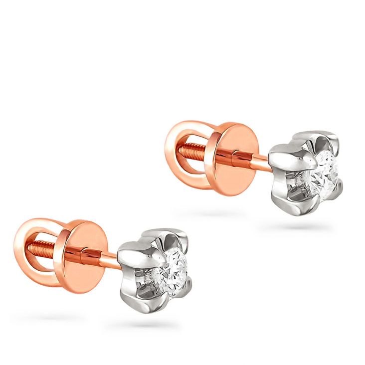 2-266-10-1,39 Серьги пуссеты с бриллиантами бренд Первая Бриллиантовая Компания (Au 585)