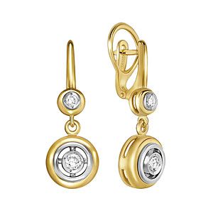 Оригинальные серьги из золота лимонного цвета 585 пробы с бриллиантами придаст индивидуальность вашему образу. Английский вид замка с подвесным элементом.