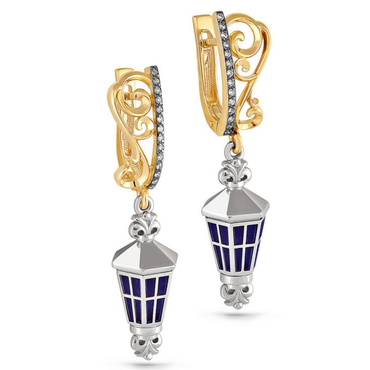 серьги с эмалью и бриллиантами бренд Kabarovsky