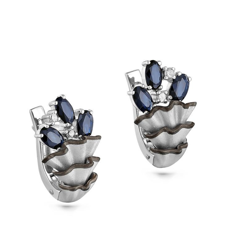 2479-251-03-00 Серьги с сапфирами и бриллиантами из белого золота бренд Vesna (Au 585)