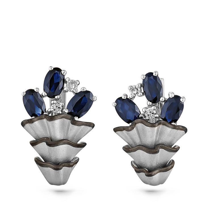 Серьги с сапфирами и бриллиантами из белого золота бренд Kabarovsky