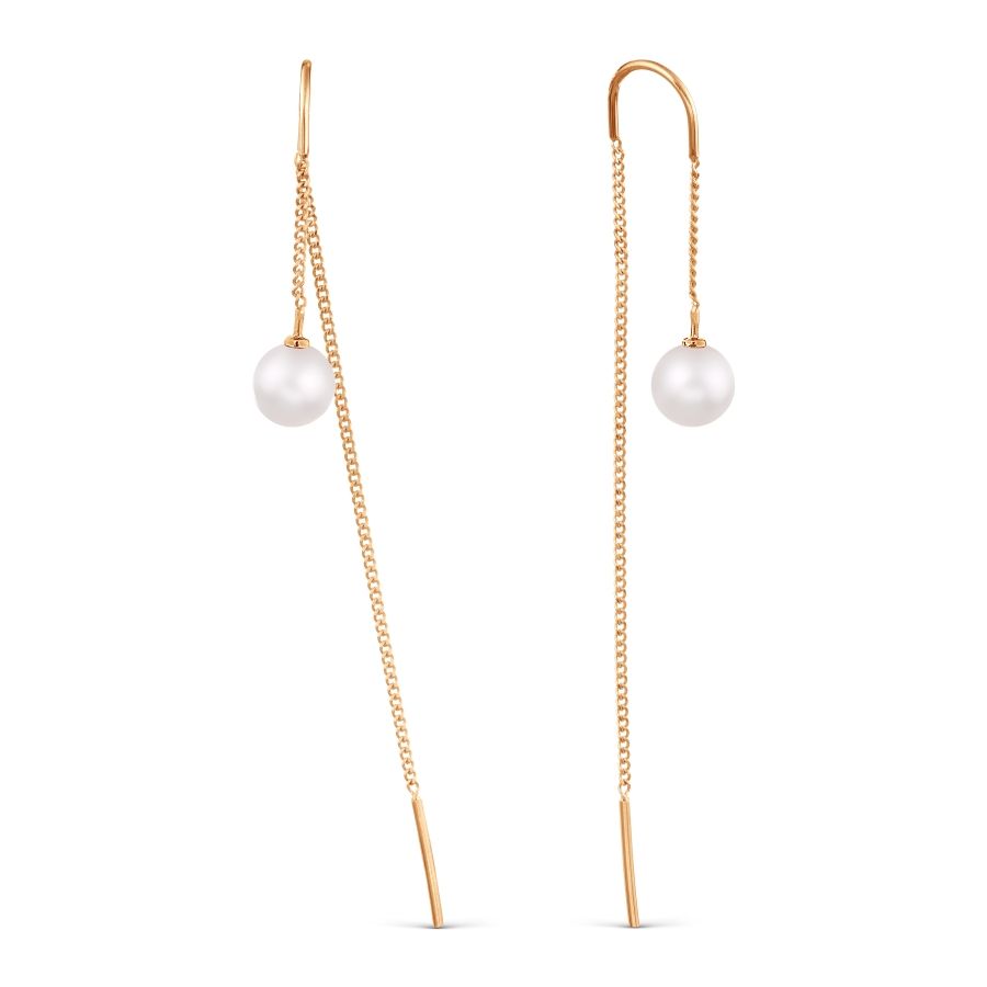 Т10802Б437 Серьги продевки с жемчугом бренд Karatov (Au 585)