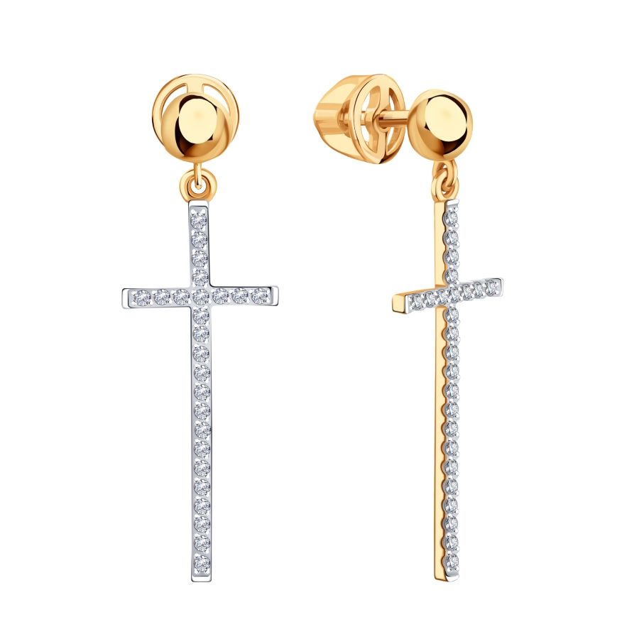 т14202В428 Серьги пуссеты крест бренд Karatov (Au 585)