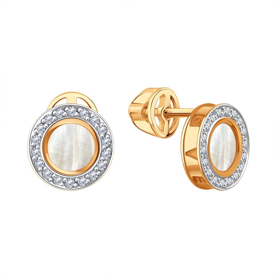 Т14302В627 Серьги пуссеты с перламутром бренд Karatov (Au 585)